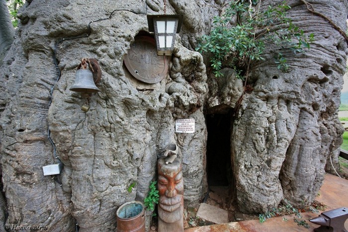 Хозяева баобаба, бурское семейство ван Хирден, устроили в дупле паб еще в 1933 году. Под 4-метровым деревянным потолком, в окружении совершенно естественного интерьера (даже более первозданного, чем в уже описанном нами колоссальном домике на дереве), и поныне можно промочить горло (кстати, в качестве стакана в Африке часто используют сушеную оболочку плода баобаба), а можно даже устраивать шумные пати. Интересно, какова она - клубная жизнь в баобабе?